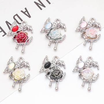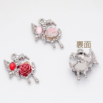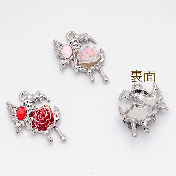 月チャーム とける月 三日月 ローズ・蝶々付き スイートクール 宇宙チャーム メタルチャーム 約19×28mm(2ヶ)