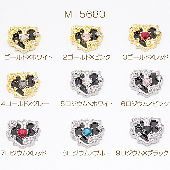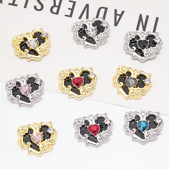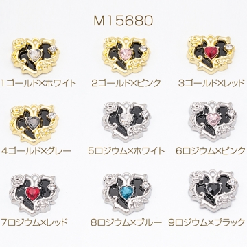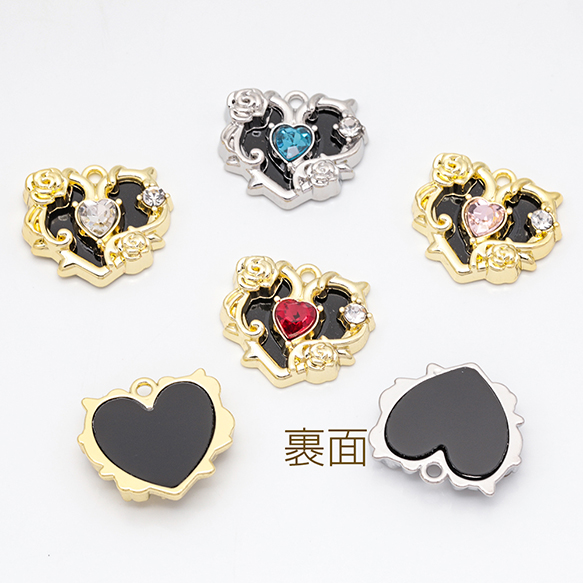 ハートチャーム ブラック 絡みあう薔薇 ハート付き スイートクール メタルチャーム 約18×20mm(2ヶ)