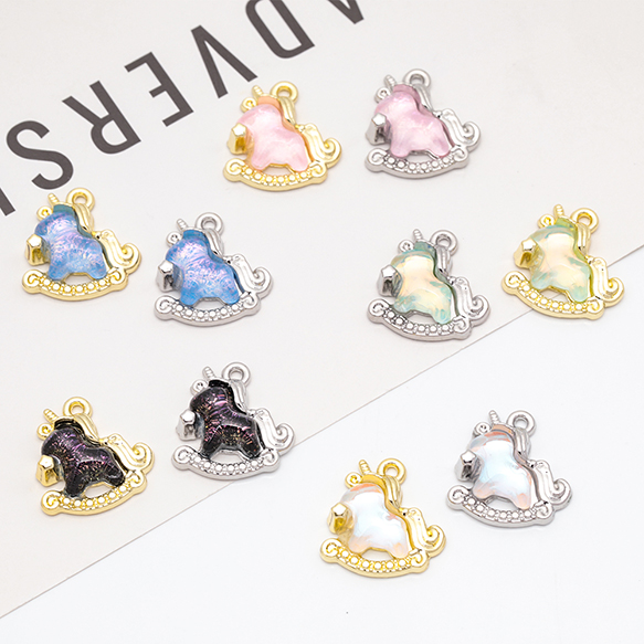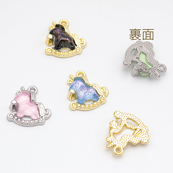 ユニコーンチャーム 木馬 カラフル 立体 メルヘン 幻想的 メタルチャーム 約14×14mm(2ヶ)