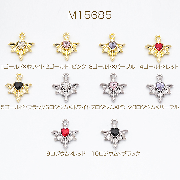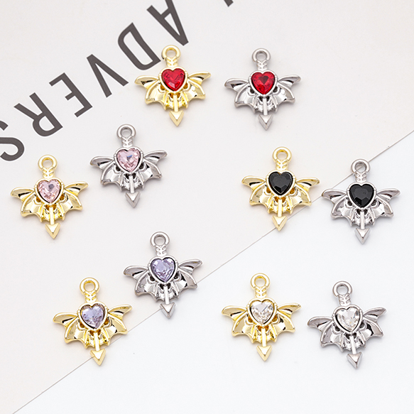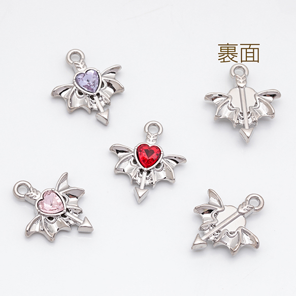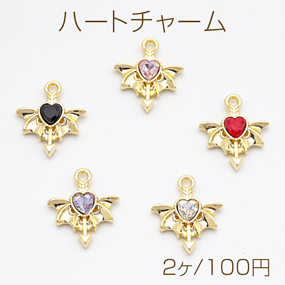 ハートチャーム ハートと羽 デビル 悪魔 コウモリ ハート付き スイートクール メタルチャーム 約15×17mm(2ヶ)
