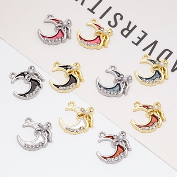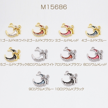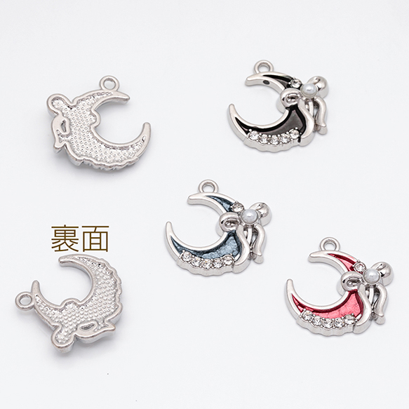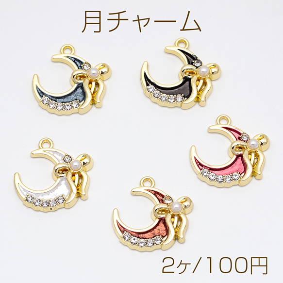 月チャーム 三日月 リボン パールとストーン付き スイートクール 宇宙チャーム メタルチャーム 約18×19mm(2ヶ)