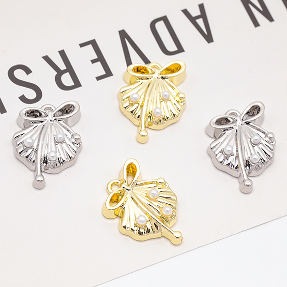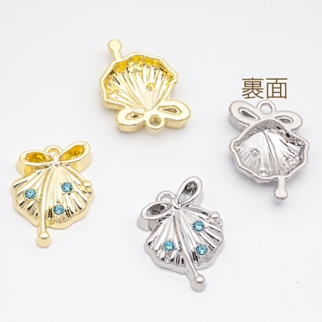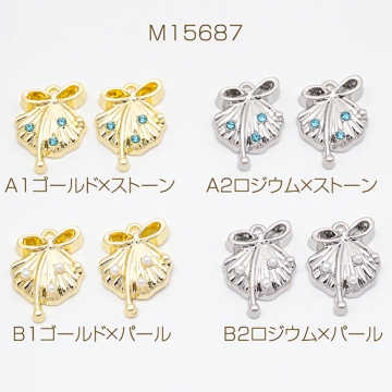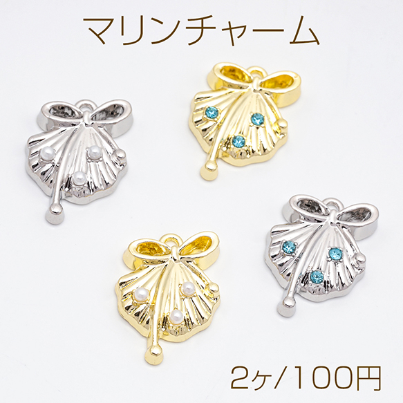 マリンチャーム ホタテ シェル 貝 リボン ストーン付き マリンチャーム 半面 メタルチャーム 約14×19mm(2ヶ)
