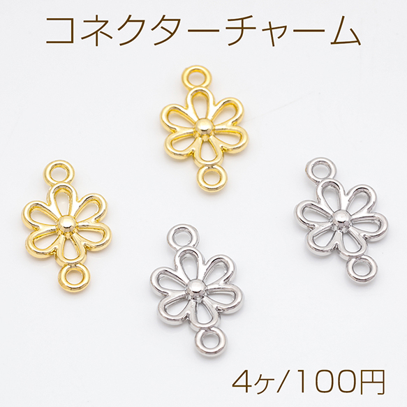 コネクターチャーム フラワー お花 接続金具 フレームチャーム メタルチャーム 約9×15mm(4ヶ)