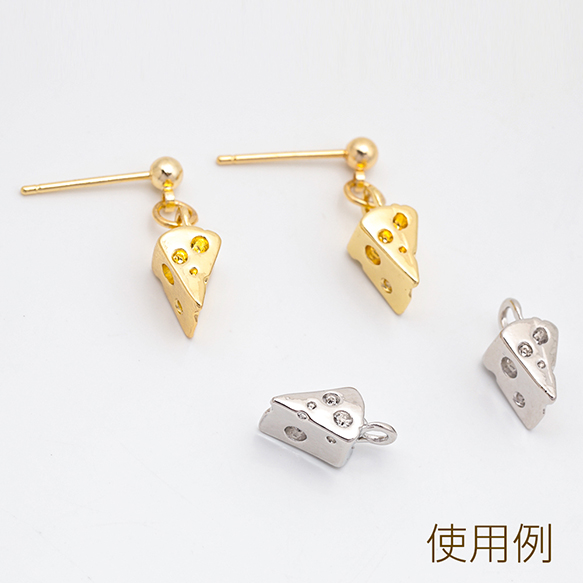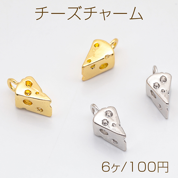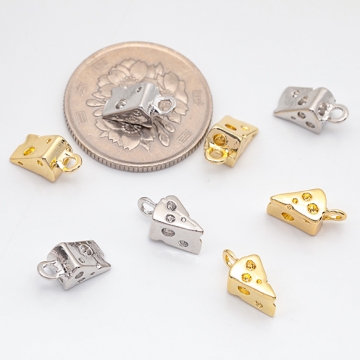 チーズチャーム 三角チーズ ミニチュア 食べ物チャーム メタルチャーム 約5×12mm(6ヶ)