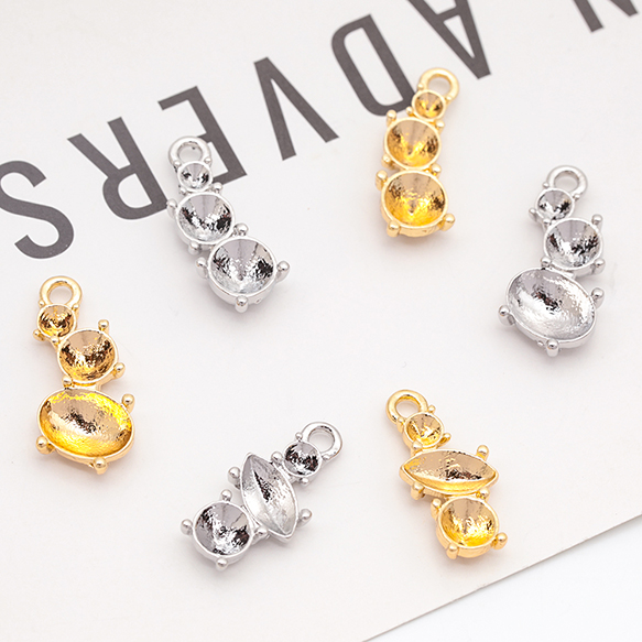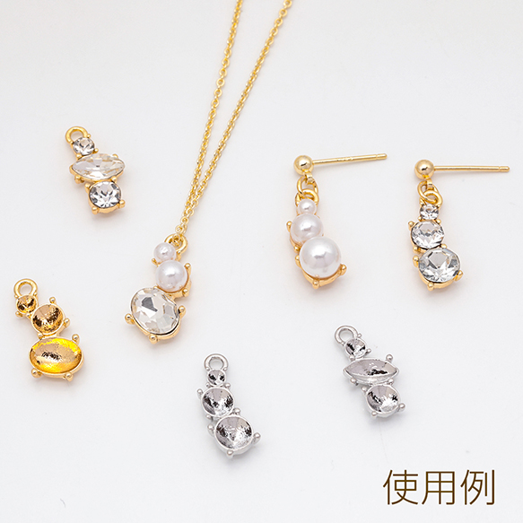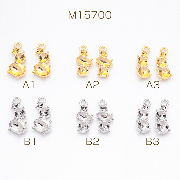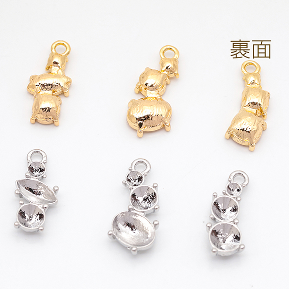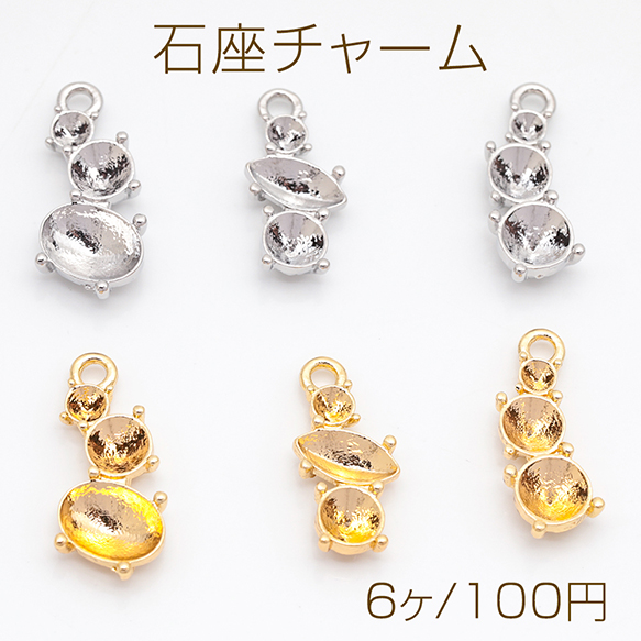 石座チャーム 三連 貼り付け 台座 パール・ストーン用 メタルチャーム 全6種(6ヶ)