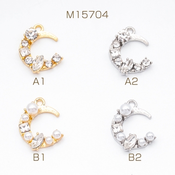 ガラスチャーム 三日月 キラキラ パール・ストーン付き 宇宙チャーム メタルチャーム 約13×18mm(2ヶ)