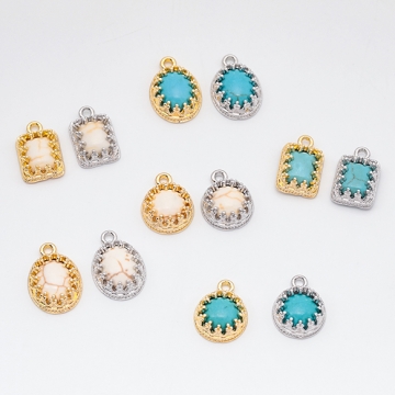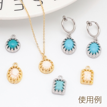 天然石チャーム ターコイズ オーバル ラウンド スクエア メタルチャーム 全12種(4ヶ)