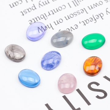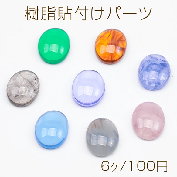 樹脂貼付けパーツ オーバル マーブルカラー デコパーツ 貼り付けパーツ アクリルパーツ 約8×10mm(6ヶ)