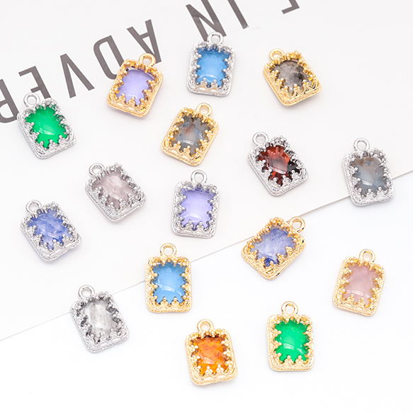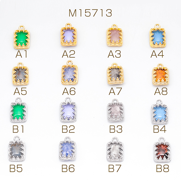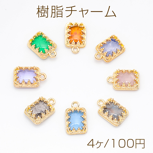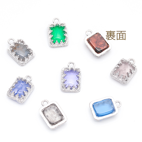 樹脂チャーム 長方形 マーブルカラー カラフル メタルチャーム 約9×14mm(4ヶ)