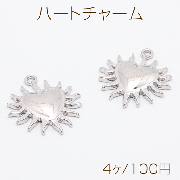 ハートチャーム ミニ 太陽 おひさま 個性的 半面 メタルチャーム 約24×27mm(4ヶ)