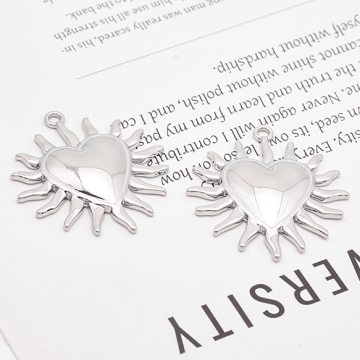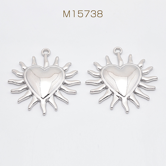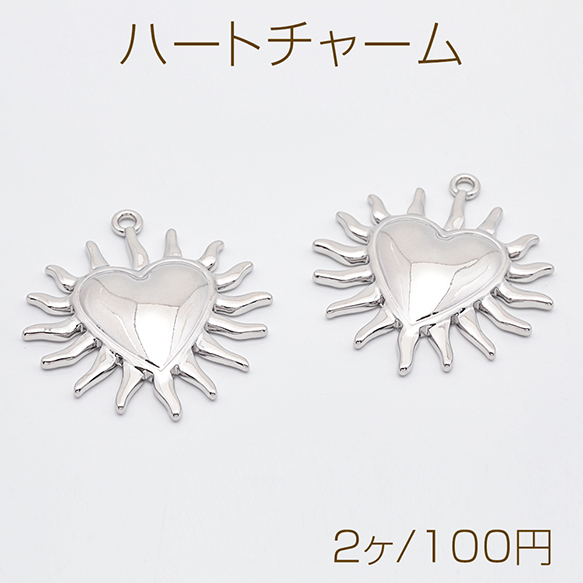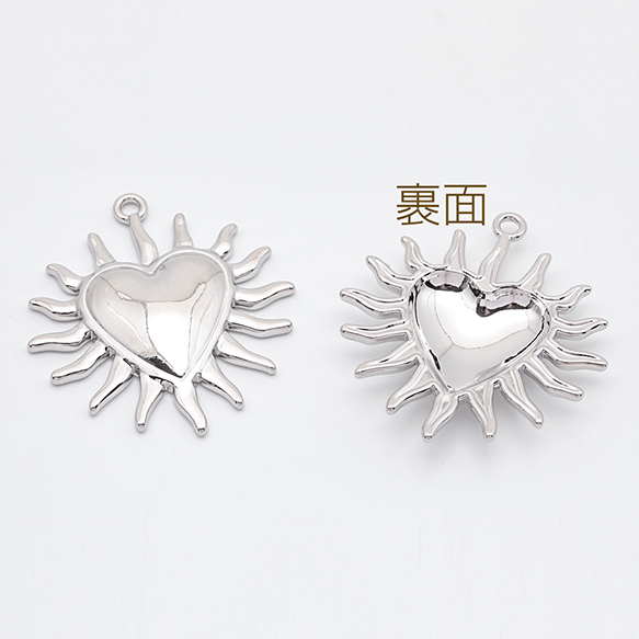 ハートチャーム 太陽 おひさま 個性的 半面 メタルチャーム 約37×40mm(2ヶ)