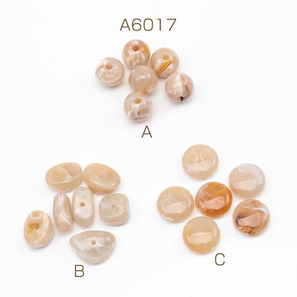 アクリルビーズ 大理石風 丸玉/不規則/フラット マーブルカラー ブラウン系 全3種(30ヶ)