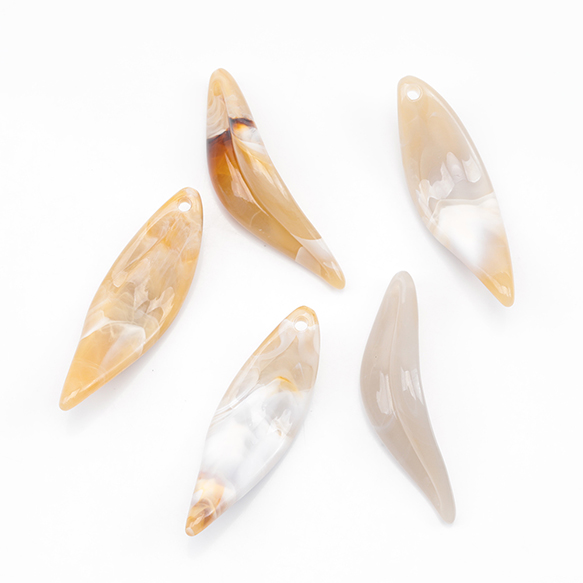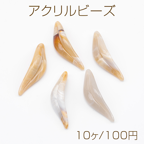 アクリルビーズ 大理石風 リーフ型 マーブルカラー ブラウン系 約12.5×38.5mm(10ヶ)