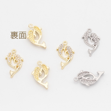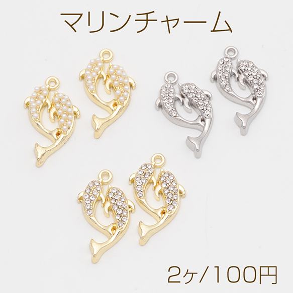 マリンチャーム さかな イルカ 海 生き物 パール/ストーン付き 半面 メタルチャーム 約13×22mm(2ヶ)