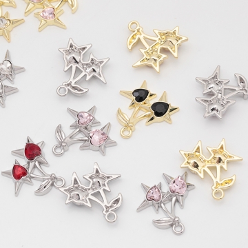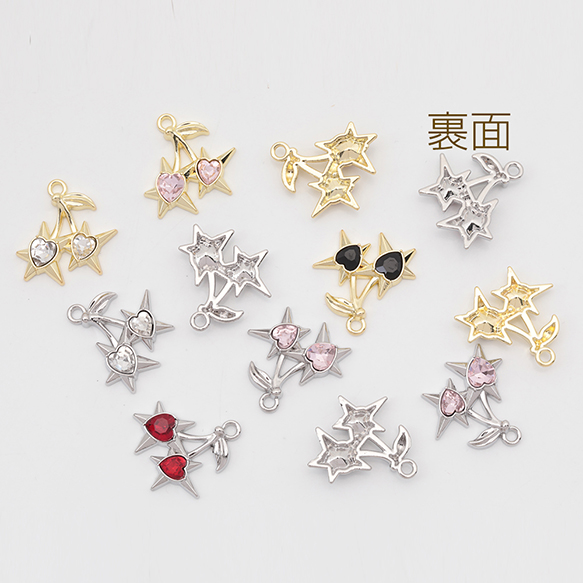 ハートチャーム さくらんぼ カラフル ストーン付き 半面 メタルチャーム 約19×19.5mm(2ヶ)