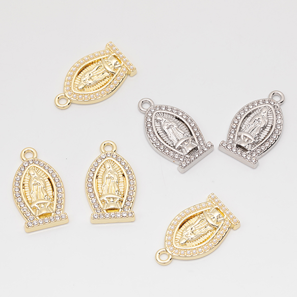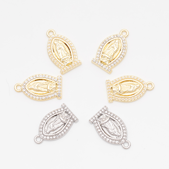 ラインストーンチャーム カメオ風 パール/ストーン付き 半面 メタルチャーム 約12.5×21.5mm(2ヶ)