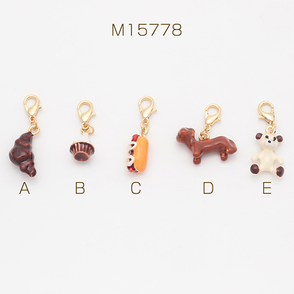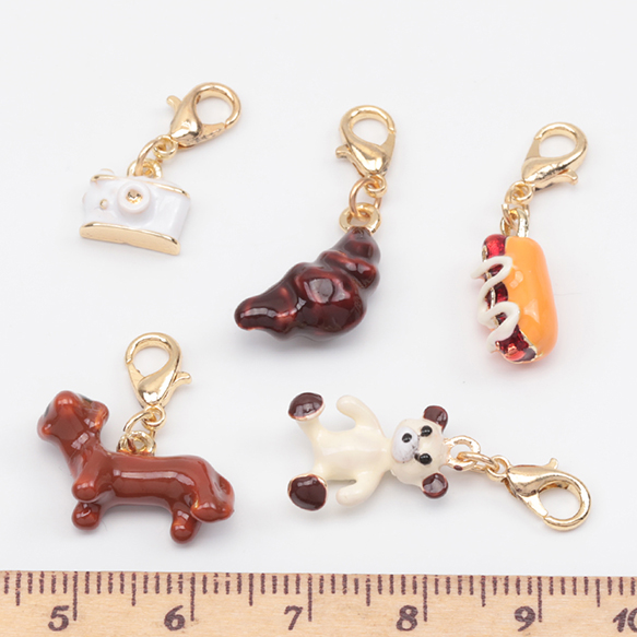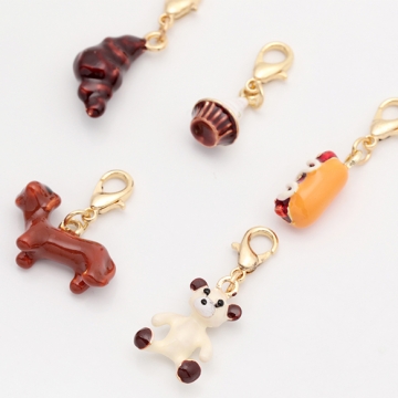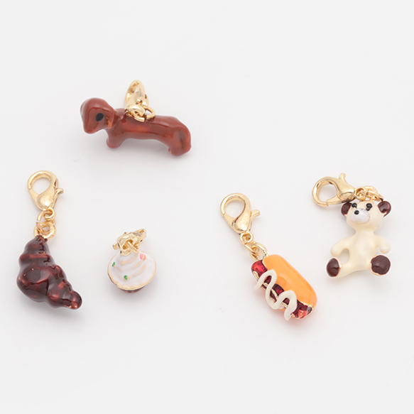 チャーム付きキーホルダー 可愛い パン スイーツ いぬ テディベア エポチャーム付き カニカンキーホルダー 全5種(1ヶ)