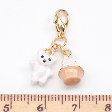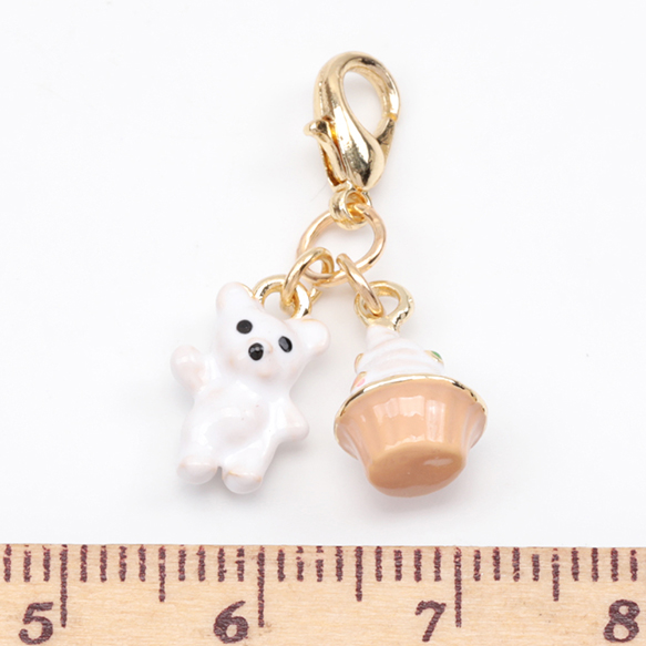 キーホルダー 可愛い カップケーキ テディベア 2個付き エポチャーム付き カニカンキーホルダー(1ヶ)