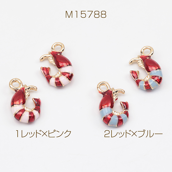 エポチャーム 海老 エビ 海 魚介 海の幸 ミニチュア メタルチャーム 約7×12mm(4ヶ)