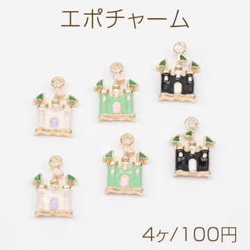 エポチャーム お城 キャッスル 洋風 洋館 ミニチュア 建物チャーム メタルチャーム 約10.5×15mm(4ヶ)