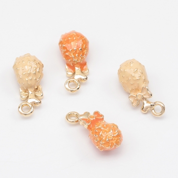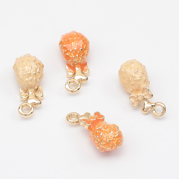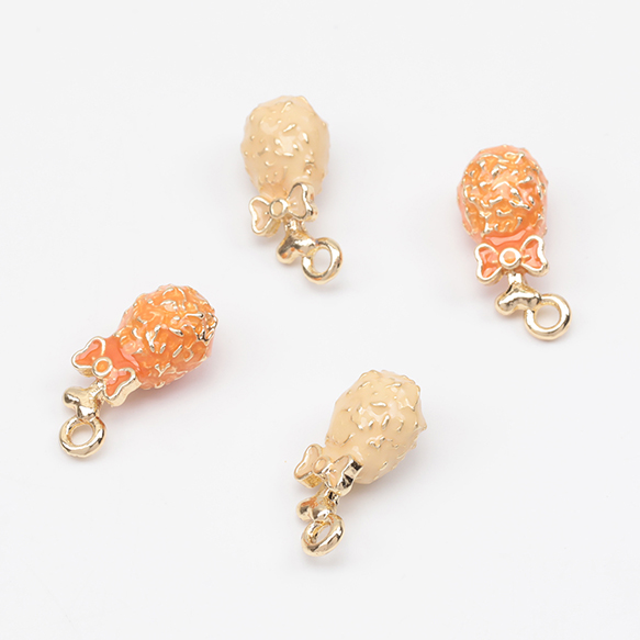 エポチャーム リボン付き フライドチキン とり肉 ミニチュア 食べ物チャーム メタルチャーム 約6×14.5mm(4ヶ)