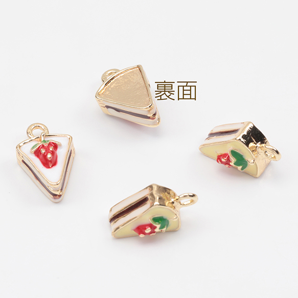 エポチャーム いちごのショートケーキ スイーツ ミニチュア 食べ物チャーム メタルチャーム 約8×13mm(4ヶ)