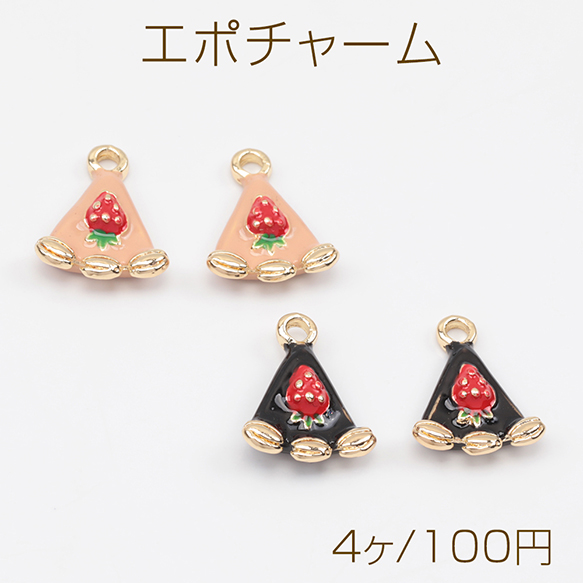 エポチャーム いちごのショートケーキ スイーツ ミニチュア 食べ物チャーム メタルチャーム 約10.5×13.5mm(4ヶ)