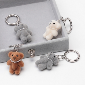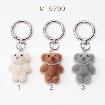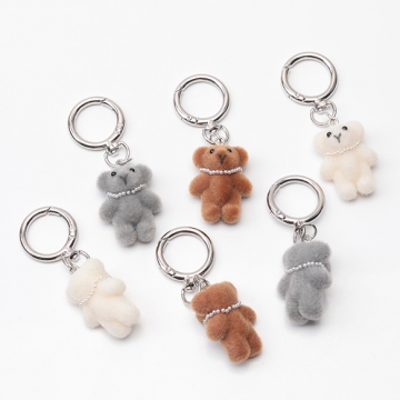 キーホルダー クマ くま テディベア 熊 キュート ネックレス付きフロッキーチャーム カラビナ バッグチャーム(1ヶ)