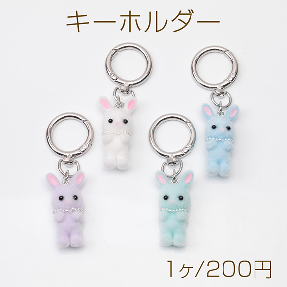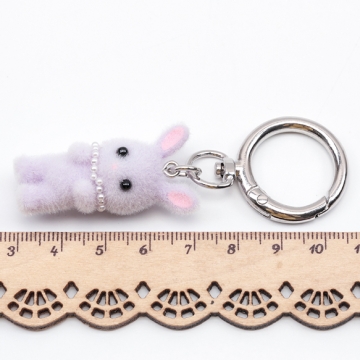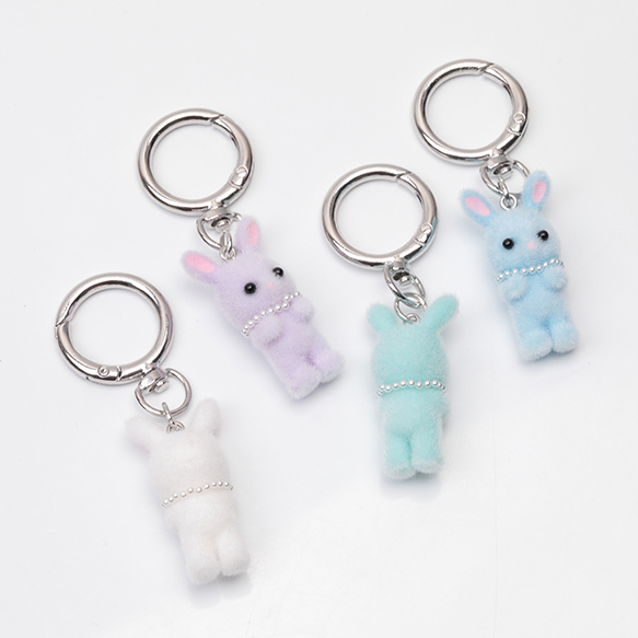 キーホルダー ウサギ うさぎ 兎 キュート ネックレス付きフロッキーチャーム カラビナ バッグチャーム(1ヶ)