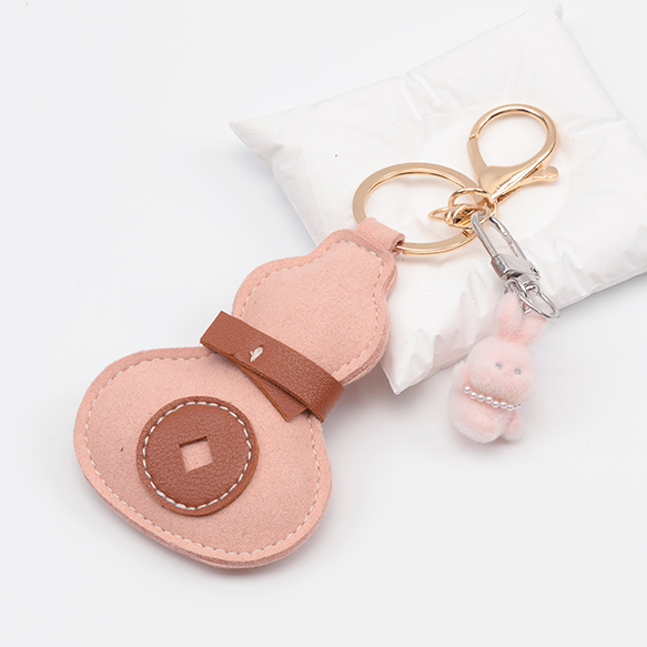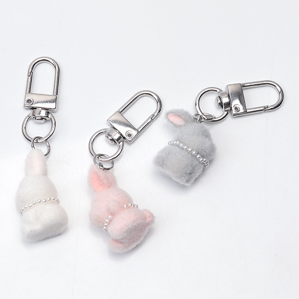 キーホルダー まんまるウサギ うさぎ 兎 キュート ネックレス付きフロッキーチャーム カラビナ バッグチャーム(1ヶ)