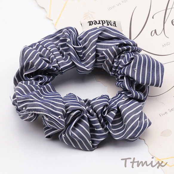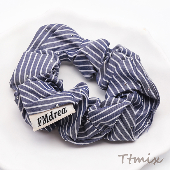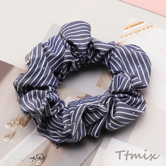シュシュ 爽やか ブルー 横ストライプ ヘアアレンジ ヘアゴム ヘアアクセサリー 約9cm(1ヶ)