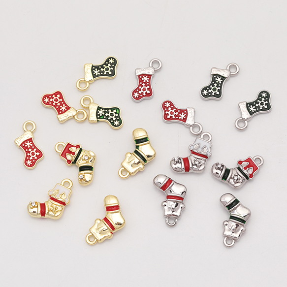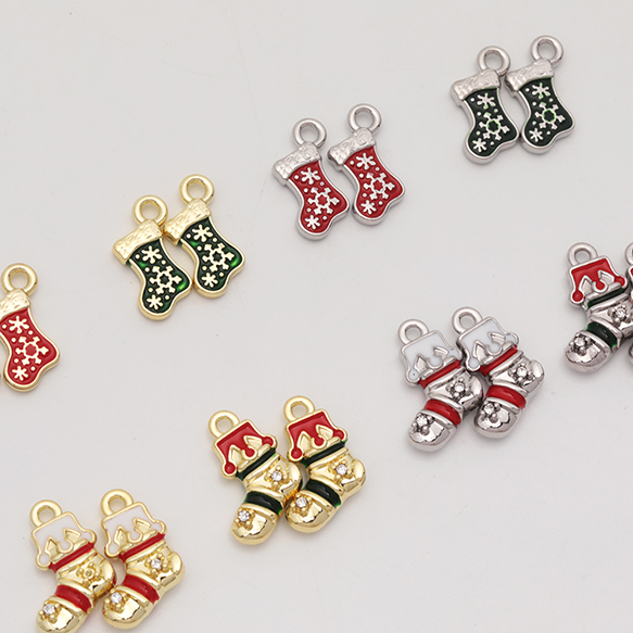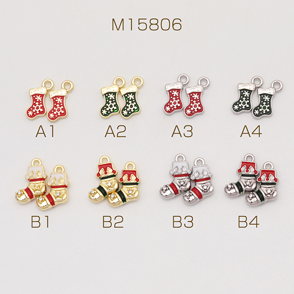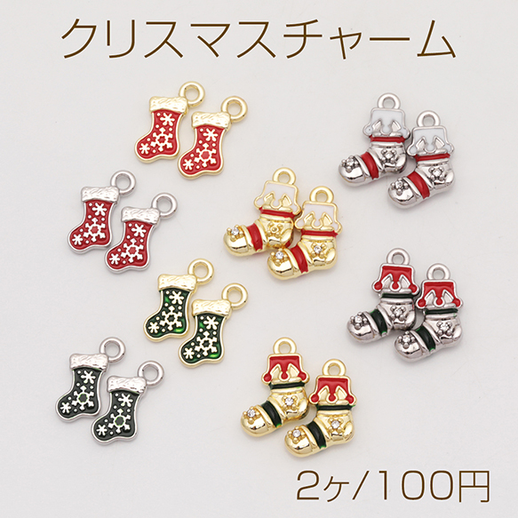 クリスマスチャーム 靴下 くつ下 雪の結晶/ストーン 冬 エポチャーム メタルチャーム 全8種(2ヶ)