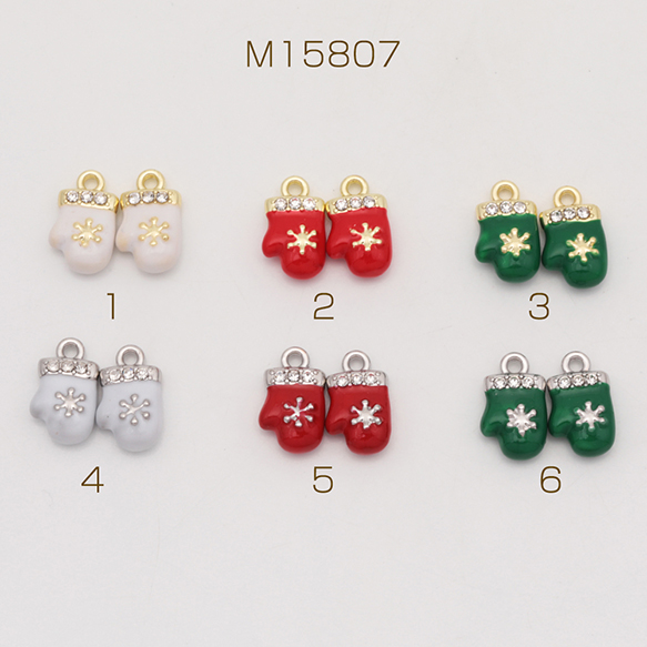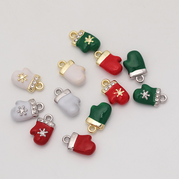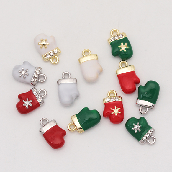 クリスマスチャーム 手袋 てぶくろ ミトン 雪の結晶 ストーン付き 冬 エポチャーム メタルチャーム 約9×15mm(1ヶ)