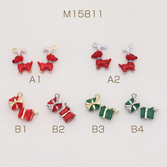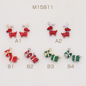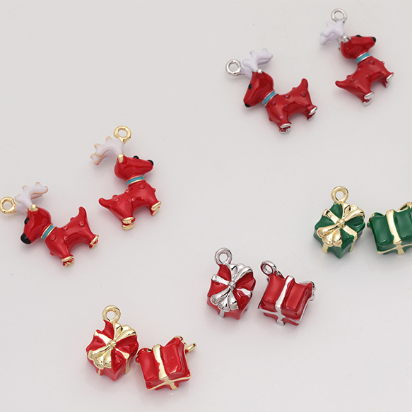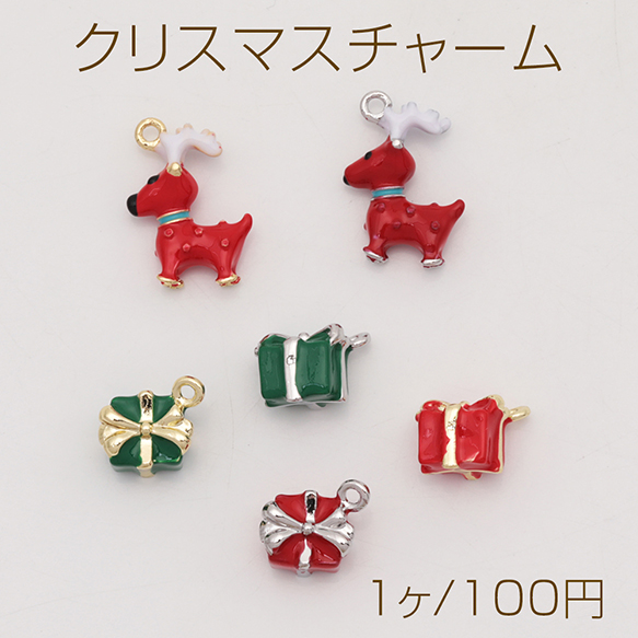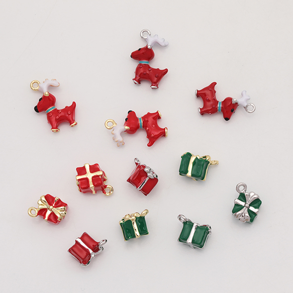 クリスマスチャーム 立体 トナカイ プレゼントボックス 冬 エポチャーム メタルチャーム 全6種(1ヶ)
