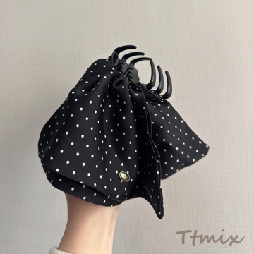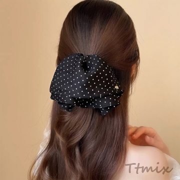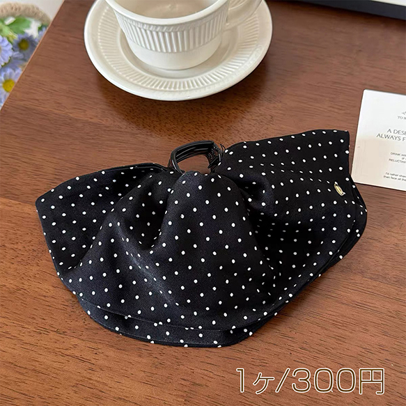 ヘアクリップ 大きめフリル ドット模様 存在感◎ ブラック 髪留め ヘアアクセサリー(1ヶ)