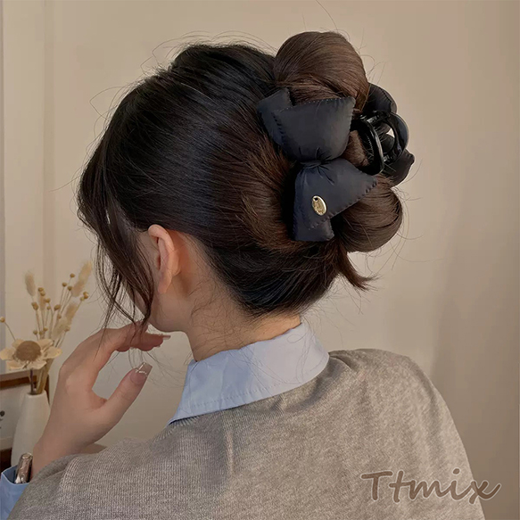 バンスクリップ 韓国風 3D ぷっくりリボン ヘアアクセサリー(1ヶ)
