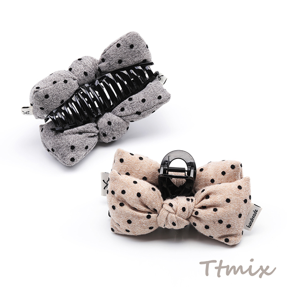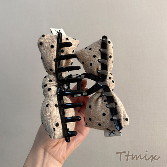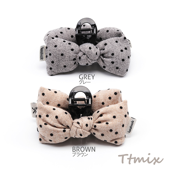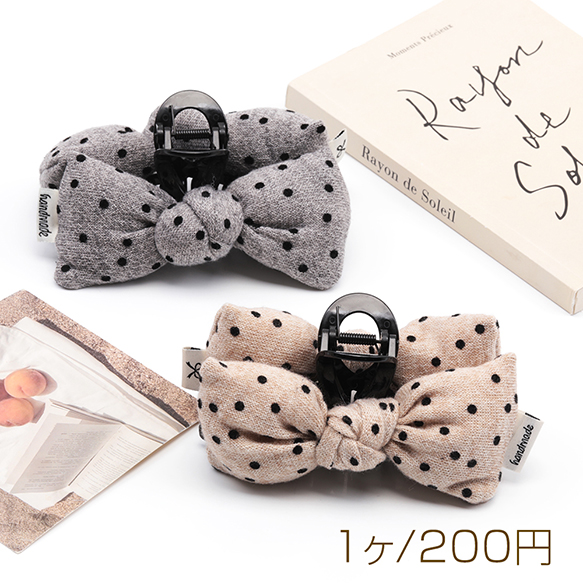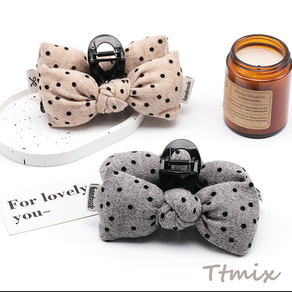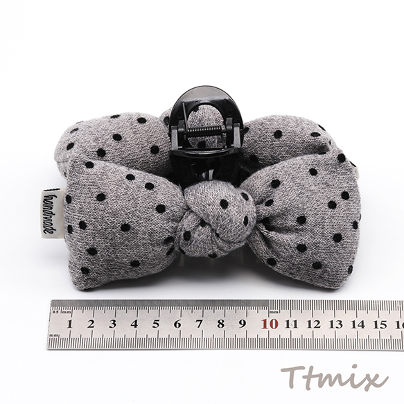 バンスクリップ ニット生地 ドット柄 可愛い 大きめリボンクリップ 秋冬用 髪留め ヘアアクセサリー(1ヶ)