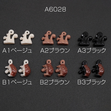 樹脂チャーム ハリネズミ リス 立体 アニマル 動物チャーム 全6種(4ヶ)