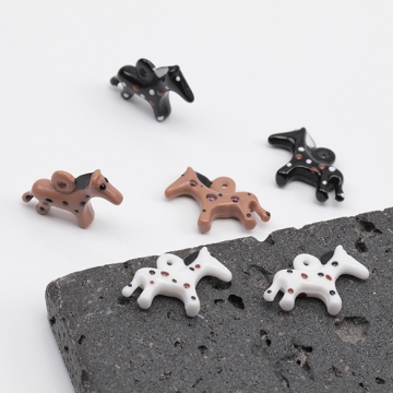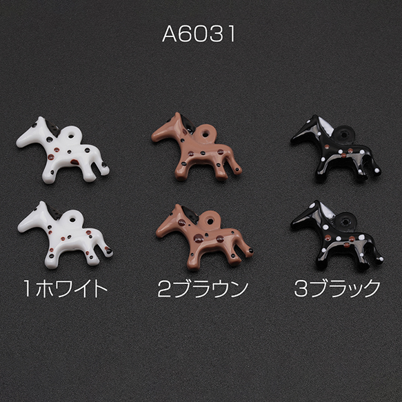 樹脂チャーム ドット模様 ウマ 馬 立体 アニマル 動物チャーム 馬チャーム 約15×20mm(4ヶ)