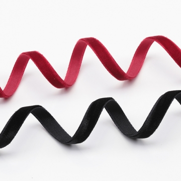 リボンテープ ベルベット 片面 ブラック/レッド 秋冬 飾り 手芸材料 幅約0.6cm(4m)