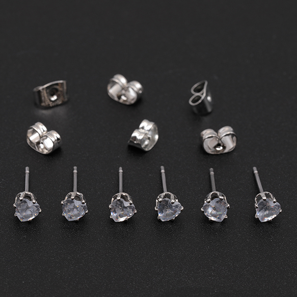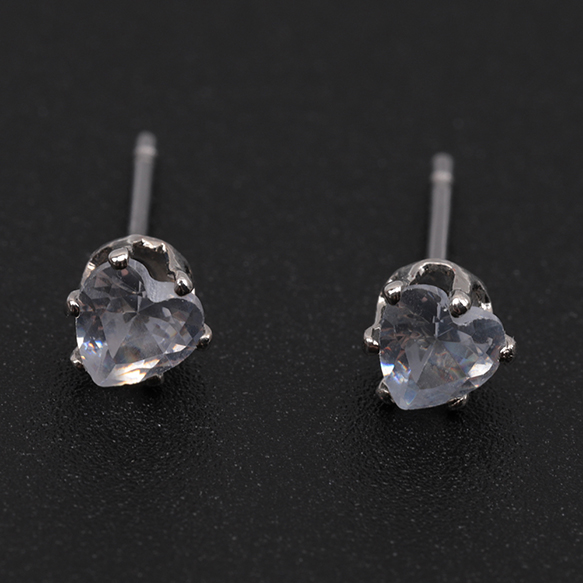 デザインピアス シンプル ハートのジルコニア キラキラ メタルピアス 約5mm(6ヶ)