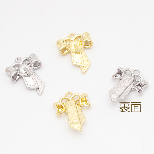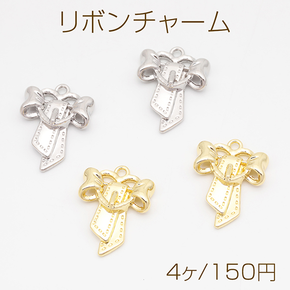 リボンチャーム リボン ベルト風 かわいい メタルチャーム 約18×24mm(4ヶ)