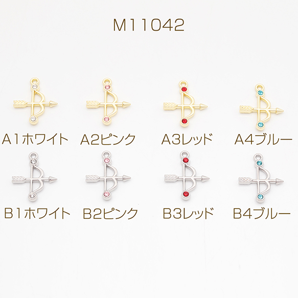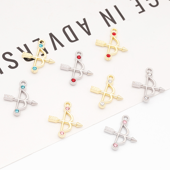 天使チャーム キューピッドの矢 天使の矢 カラフル ストーン付き 立体 メタルチャーム 約16×19mm(4ヶ)