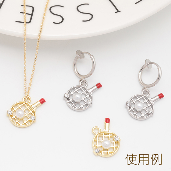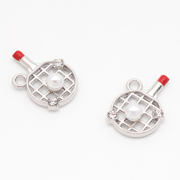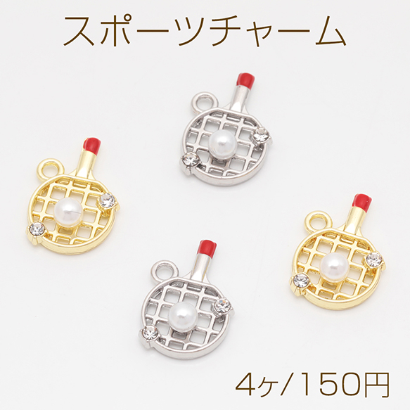 スポーツチャーム 卓球 ストーン&ABSパール付き メタルチャーム 約12×18mm(4ヶ)