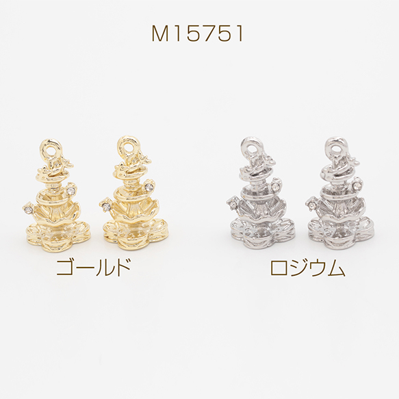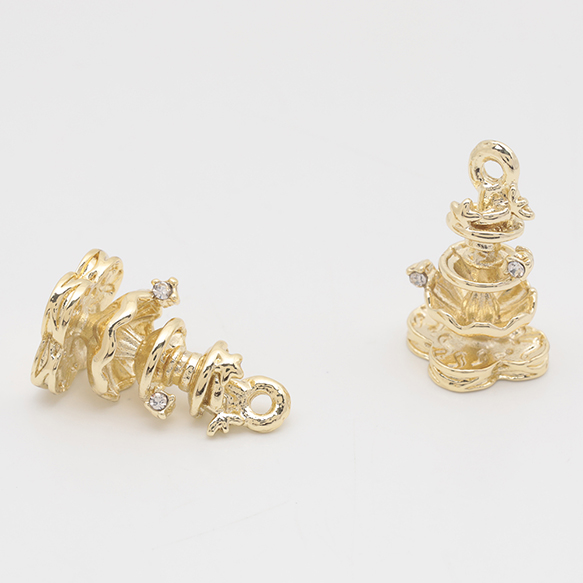噴水チャーム 幻想的 メルヘン 願いの泉 ストーン付き 立体 メタルチャーム 約12×20mm(2ヶ)