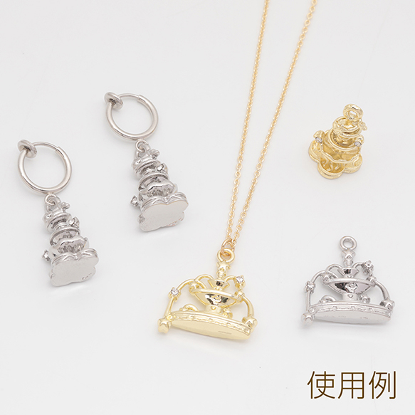 噴水チャーム 星付き 多段式ファウンテン 願いの泉 ストーン付き 立体 メタルチャーム 約20×22mm(2ヶ)