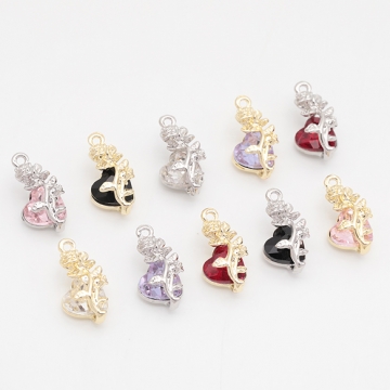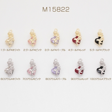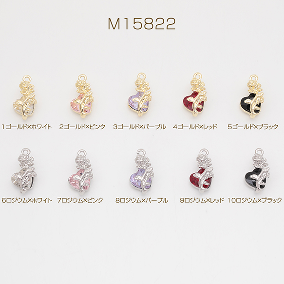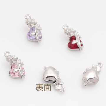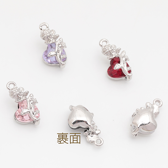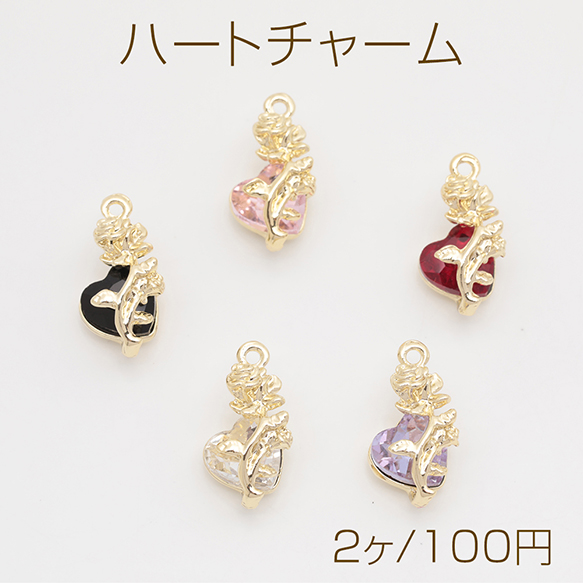 ハートチャーム ローズ 薔薇 カラフル ストーン付き 立体 メタルチャーム 約9×18mm(2ヶ)