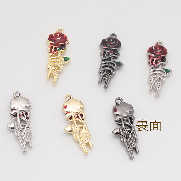 メタルフラワーチャーム ローズ 薔薇 立体 メタルチャーム エポチャーム 約9×25mm(2ヶ)