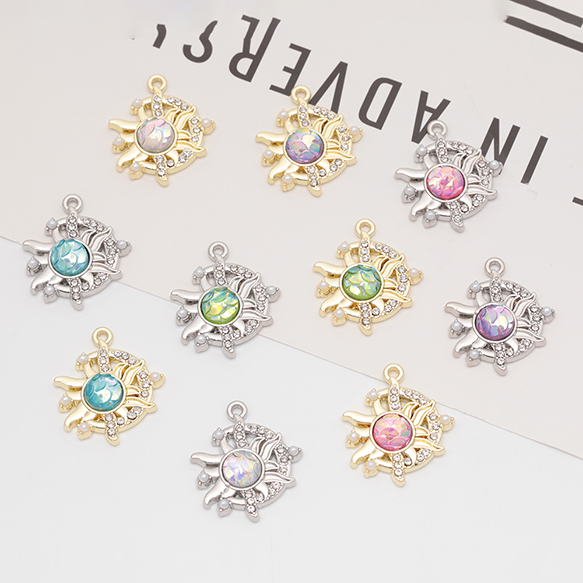 太陽チャーム おひさま キラキラ ABSパール&ストーン付き 半面 樹脂チャーム メタルチャーム 約18×21mm(2ヶ)