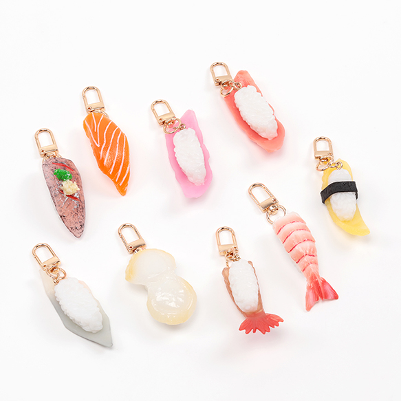 キーホルダー アジの握り寿司 食品サンプルキーホルダー ミニチュアフードストラップ U字型ナスカン付き 約2.3×8.5cm